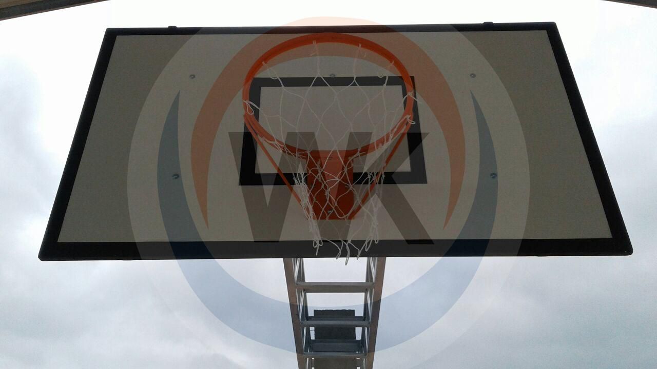 Estrutura de basquete treliça de cantoneira, fabricada aço carbono SAE 1020 com tabela oficial em laminado naval 18mm nas medidas 1,80x105 com aro de basquete e rede tipo chúa